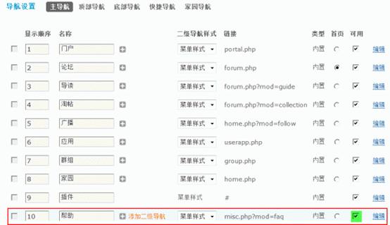 1、 操作路径:【后台】=>【界面】=>【导航设置】=>启用内置的帮助导航,如下图所示: